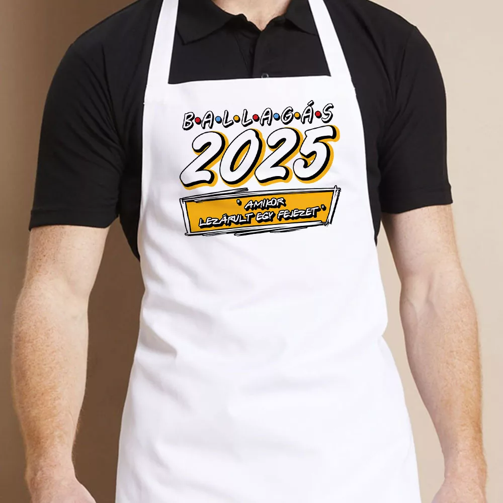 Ballagási kötény, lezárult egy fejezet. Ajándék kötény ballagásra. Meglepetés ballagásra fiúknak és lányoknak, évszámmal, amikor lezárult egy fejezet. Örök emlék és praktikus hasztnálati tárgy is egyben.