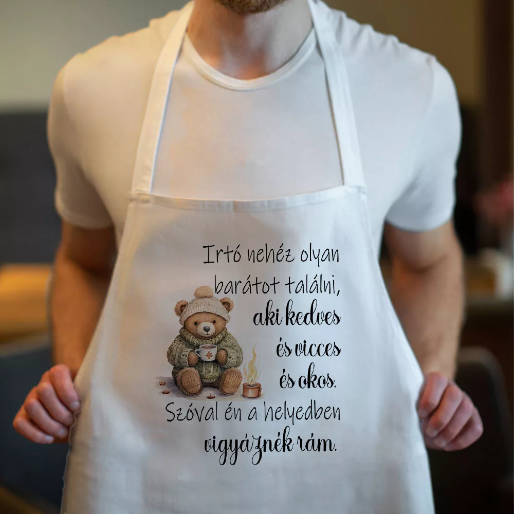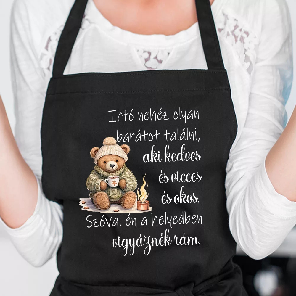 Vicces kötény barátoknak, vigyáznék rám. Lepd meg barátod vagy barátnőd egy szellemes üzenetet hordozó köténnyel, hogy tudja mennyire is szüksége van rád neki! Irtó nehéz olyan barátot találni, aki kedves, vicces és okos. Szóval én a helyedben vigyáznék rám. – Ez a kötény telitalálat, ha egy különleges barátnak keresel ajándékot! Tedd szebbé a napját egy olyan ajándékkal, amiről minden nap majd Te jutsz eszébe és mindig megnevetteti.