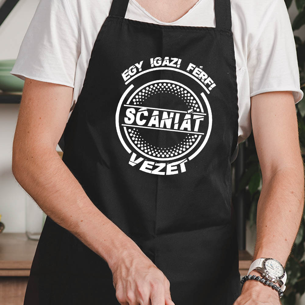 Scaniás kötény, igazi férfi Scaniát vezet. Egy igazi férfi Scaniát vezet feliratos kötény. Egy Scaniás kötényre minden Scania tulajdonosnak szüksége van, ha ismersz ilyen embert lepd meg őt vele.