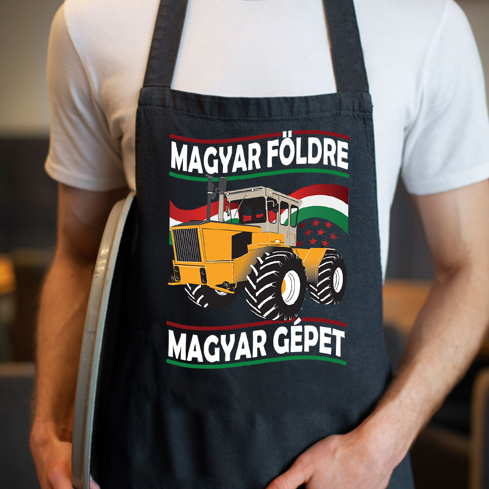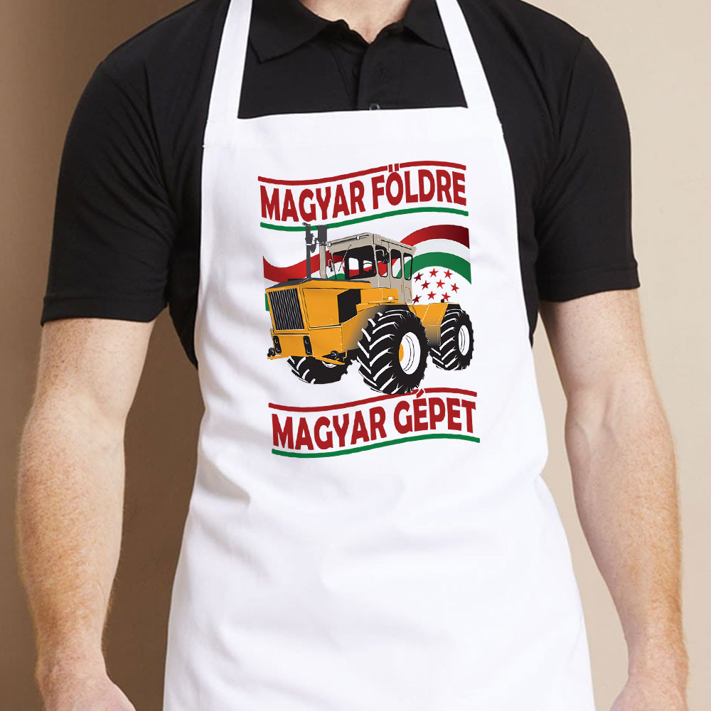 Traktoros ajándék, magyar földre Rába kötény. Magyar földre, magyar gépet kötény Rába mintával mezőgazdászoknak, traktorosoknak születésnapra, névnapra.