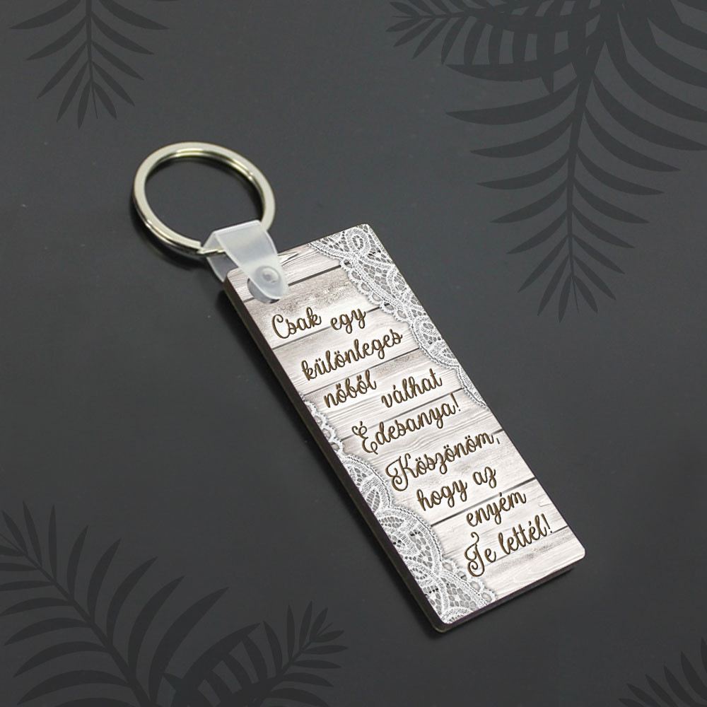 Kulcstartó Édesanyáknak, különleges nő. Egyedi kulcstartó Édesanyáknak, amely tökéletes ajándék anyák napjára, születésnapra vagy bármilyen alkalomra, amikor szeretnéd kifejezni háládat. A kulcstartó vintage stílusú fa hatású alapon csipkemintával és gyönyörű idézettel készült:
