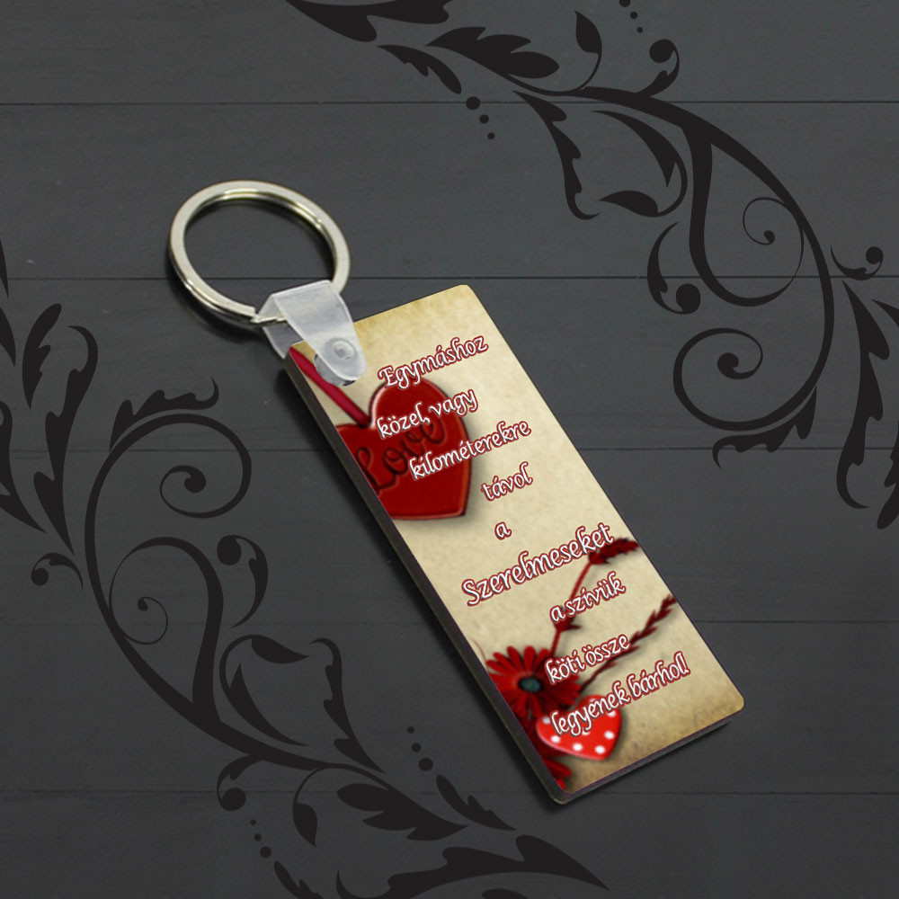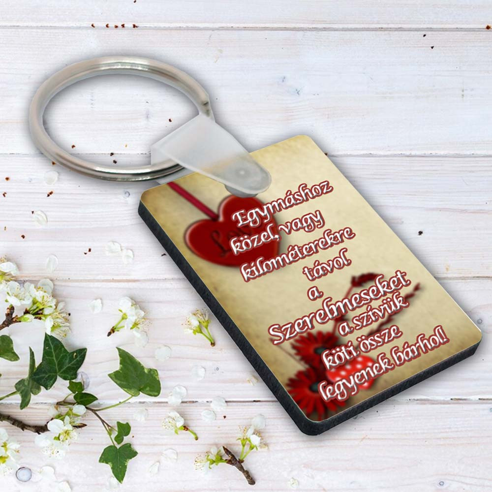 Szerelmes kulcstartó, kilométerekre távol. Egy megható és kedves ajándék szerelmednek Valentin napra, évfordulóra, akitől sokszor több kilométer is elválaszt. Egymáshoz közel vagy kilométerekre távol a szerelmeseket a szívük köti össze legyenek bárhol.