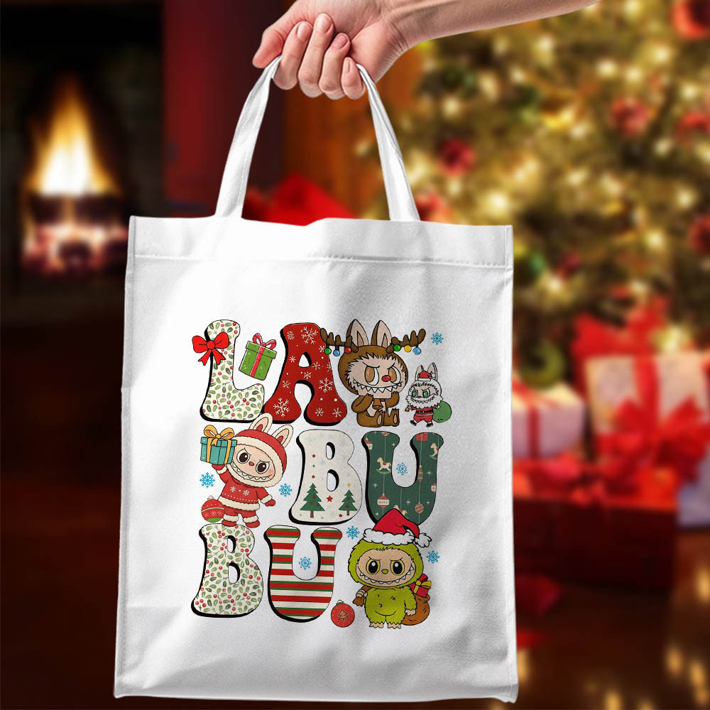 Ez a karácsonyi LABUBU mintás vászontáska strapabíró anyagból készült, és vidám, ünnepi mintája garantáltan feldobja a napodat.