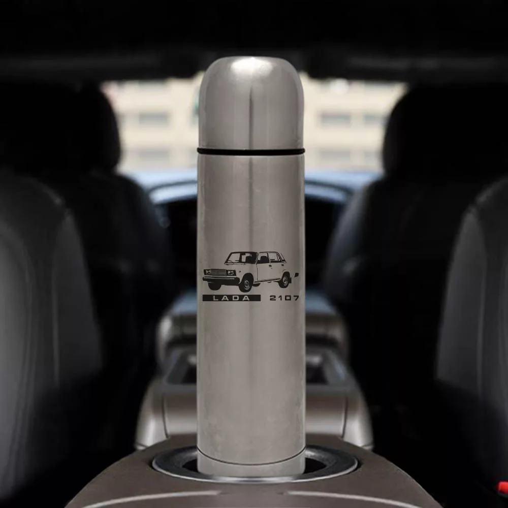 Lada 2107 termosz, Ladás ajándékok. Lada 2107 típusú autóra esküszöl és semmi másra nem cserélnéd le, esetleg ismersz olyan embert aki ezt gondolja, rendelj neki egy acél termoszt születésnapjára, amit kedvenc autóját láthatja. A minta tartós nem kopik le. Melegen vagy hidegen is tudja tartani az italokat, űrtartalma: 500ml-es vagy 750ml-es.