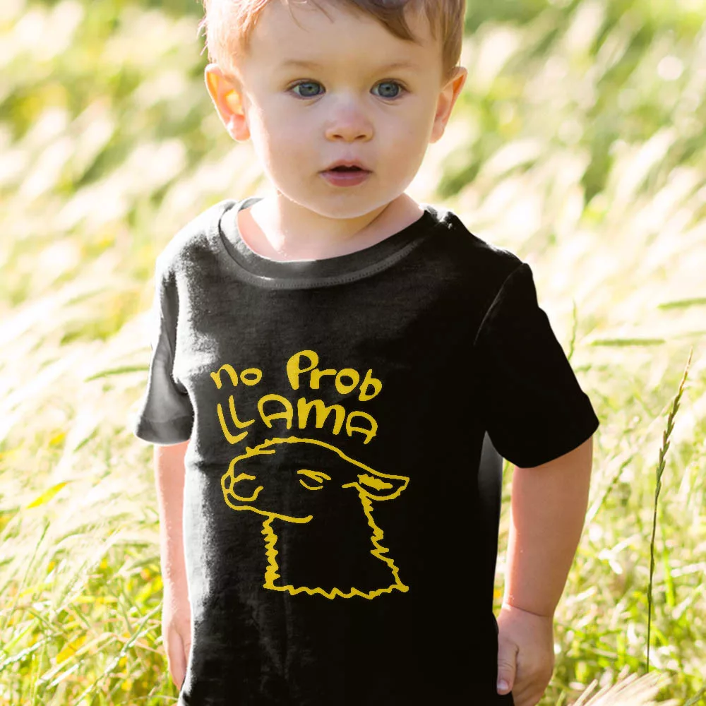 No Prob Llama gyerek póló, vicces ajándék. Nincs probléma, ha van egy láma. Praktikus és humoros ajándék, mindenkinek aki kedveli a humoros pólókat vagy a Llamat. Többféle gyerek póló és minta színnel is rendelhető.