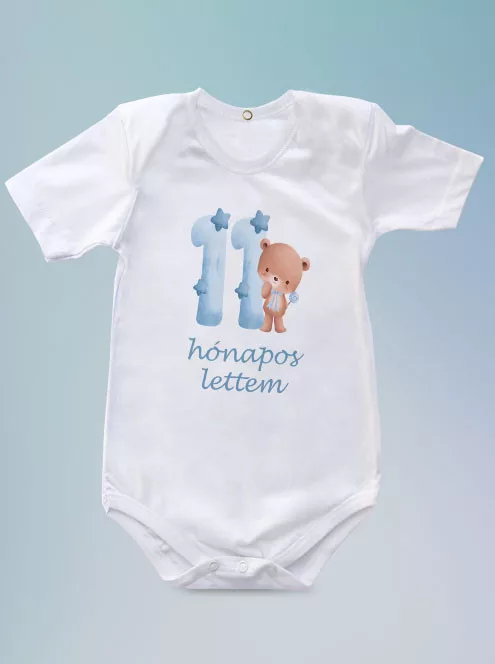 Baba ajándék, macis body kisfiúknak, 11 hónapos lettem body. Az 1 éves kor előtt egy lépéssel: a 11. hónap is nagyon fontos!