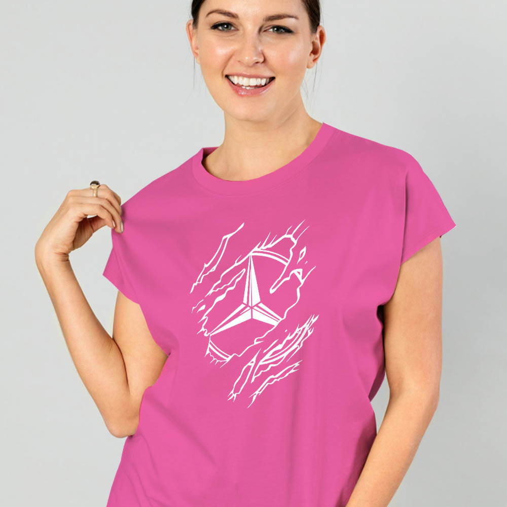Mercis női póló, tépett logós póló. Mercedes tulajdonos vagy és szeretnél egy olyan női pólót ami garantáltan nem jön veled szembe az utcán? Ne is keresgélj tovább hiszen tőlünk ezt megrendelheted és még a színét is Te döntheted el, ami az autód színéhez is passzolhat.