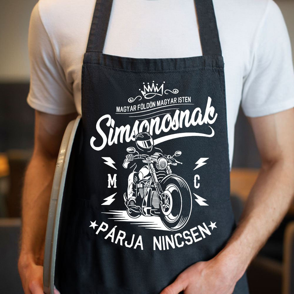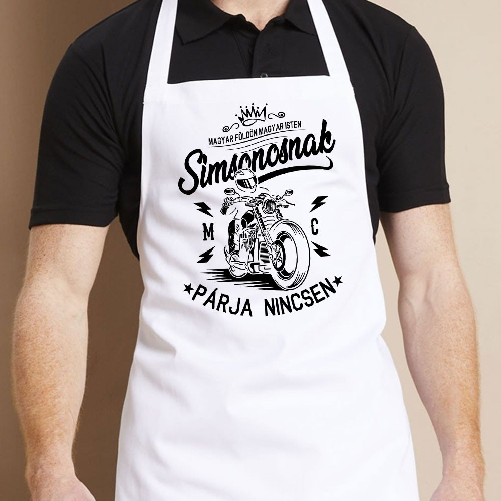 Kötény motorosoknak, Simson kötény. Kötény a Simson motor megszállottjainak. Ütős ajándék lehet barátnak, barátnőnek is. Magyar földön magyar Isten, a Simsonosnak párja nincsen felirattal. Anyaga vászon, a minta tartós, a kötény 40°C-on mosógépben mosható.