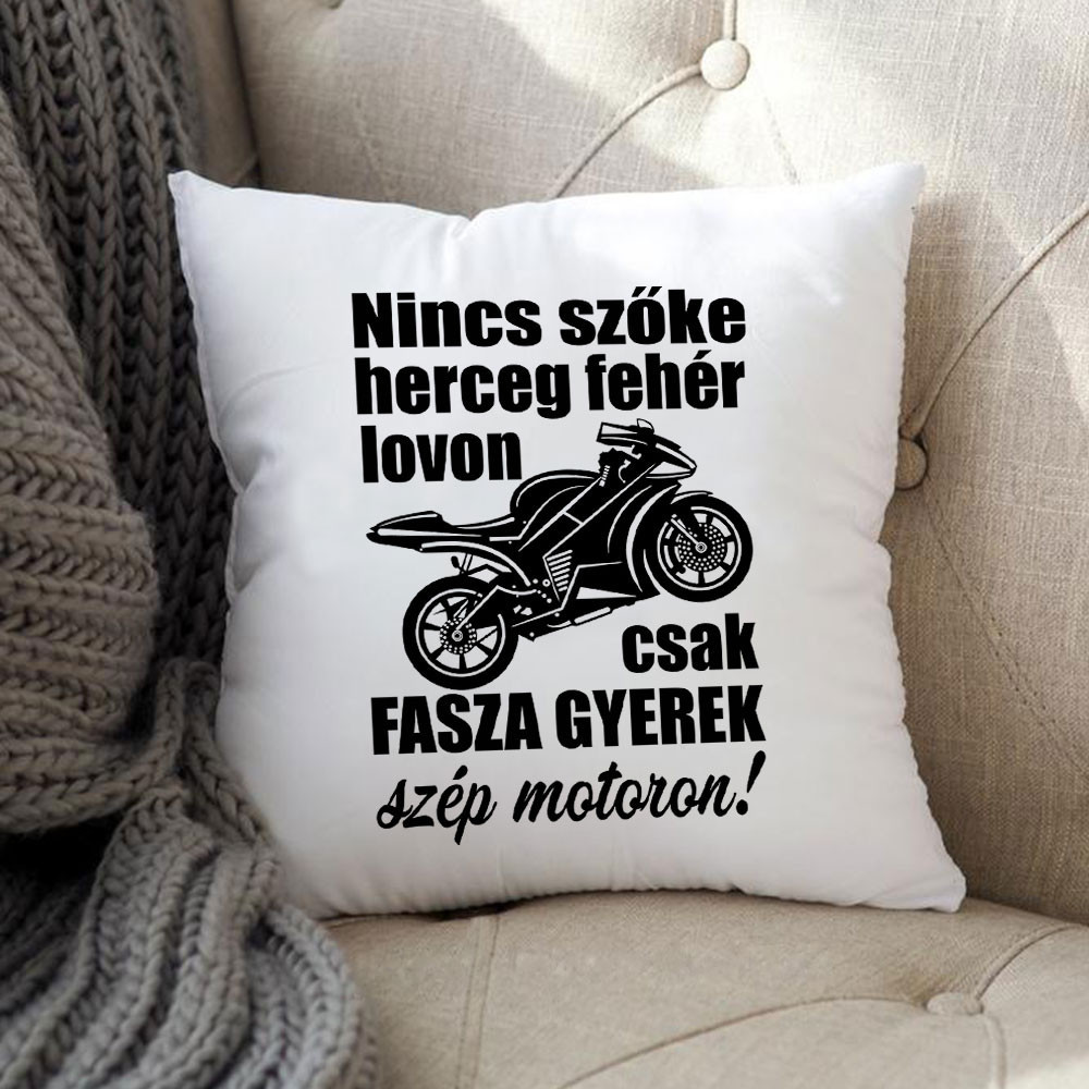 Motoros párna, ajándék motorosoknak, nincs szőke herceg fehér lovon csak fasza gyerek szép motoron mintát nálunk párnán is megtalálod. Minden motorosnak fantasztikus meglepetés, ajándék egy ilyen párna akár karácsonyra is.