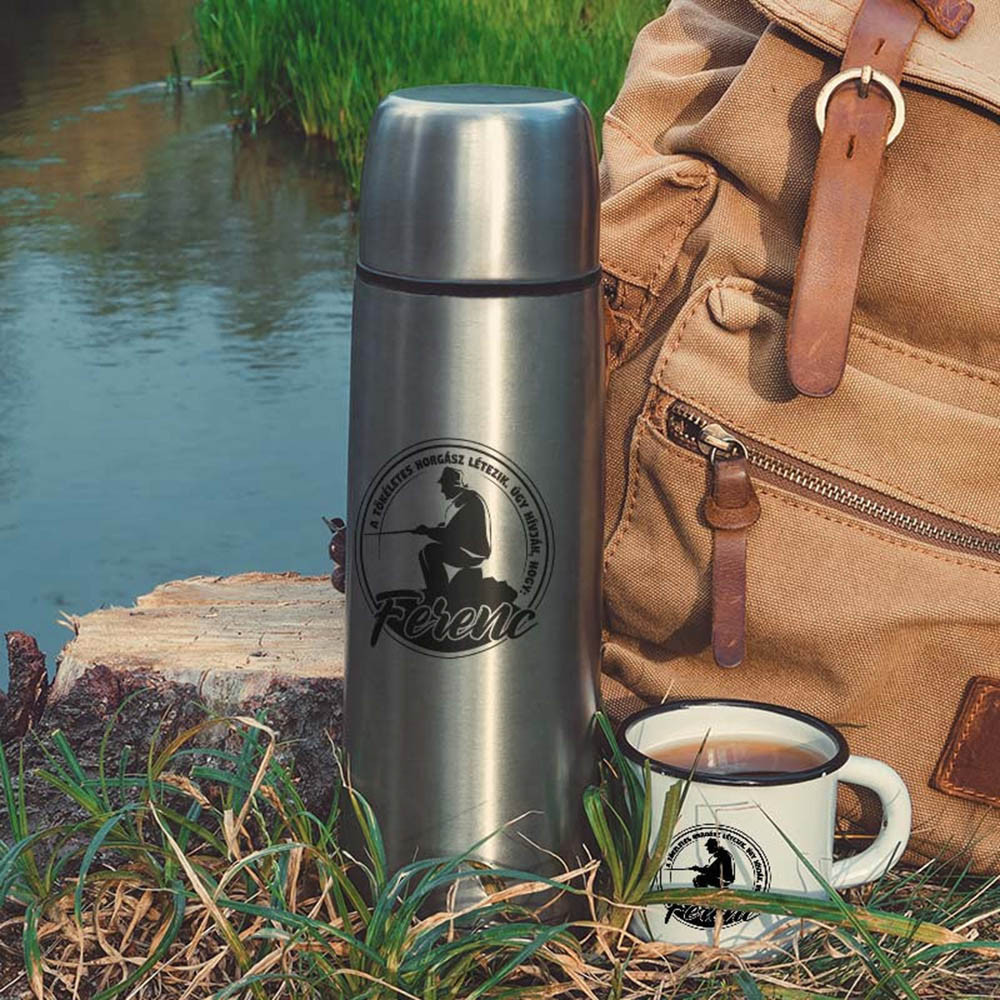 Egyedi termosz, tökéletes horgász. A tökéletes horgász létezik, és te még azt is tudod, hogy hívják Őt? Akkor nincs más dolgod, mint névnapján megajándékozni egy ilyen termosszal, aminek az űrtartalma 500ml vagy 750ml, anyaga fém és műanyag.