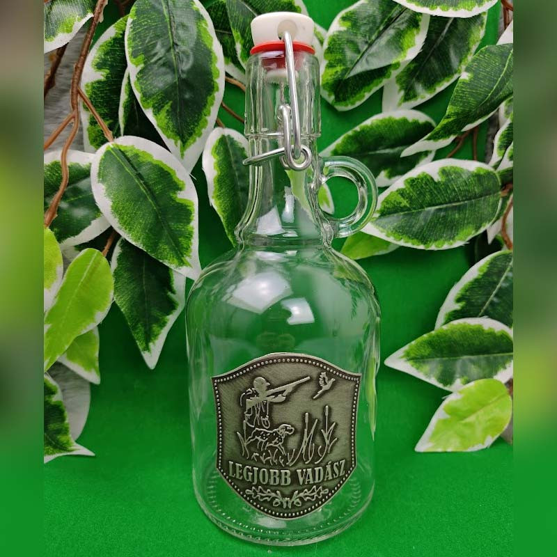 Ez a 0,5 dl-es óncímkés csatos üveg tökéletes választás minden vadász számára, aki szereti az elegáns és egyedi kiegészítőket. A "Legjobb Vadász" felirattal és vadászati motívummal díszített óncímke prémium megjelenést biztosít, míg a csatos zárás gondoskodik az italok frissességéről.