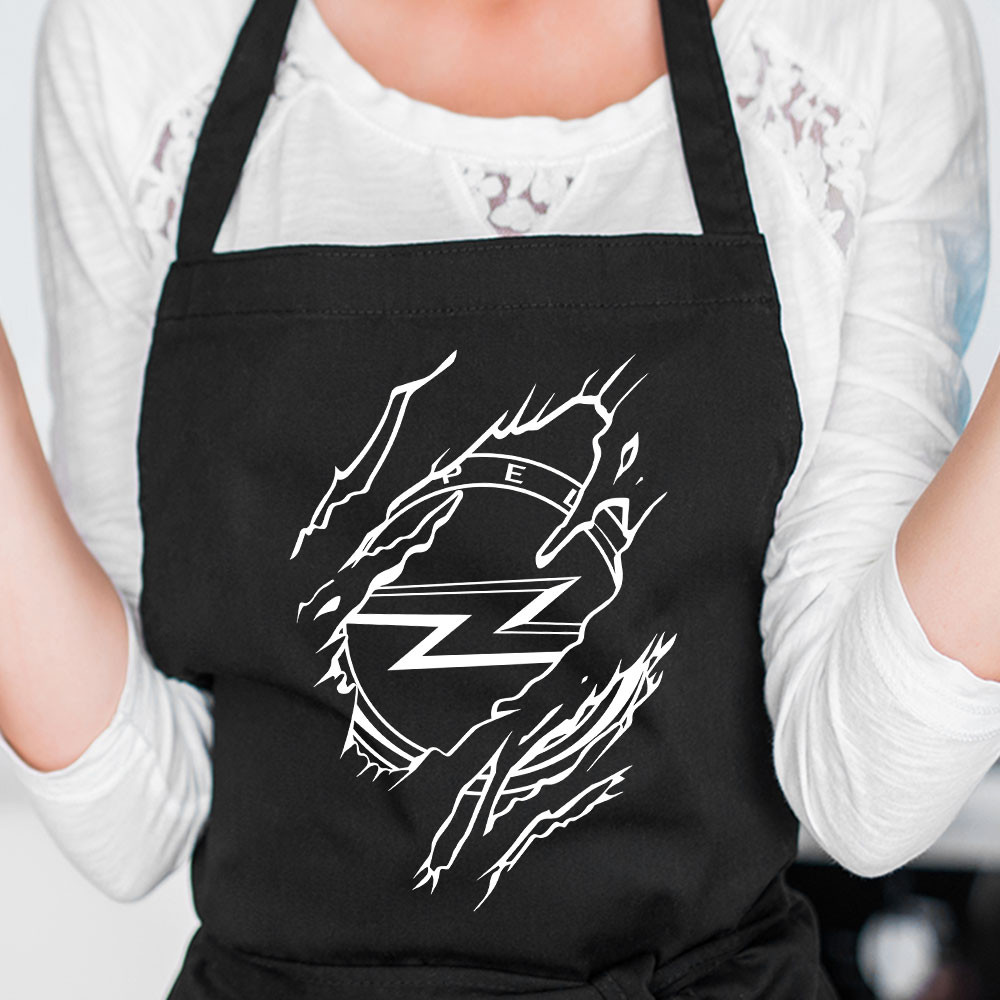 A kötény fekete és fehér színben is választható. Mérete 66x78 cm, anyaga vászon.