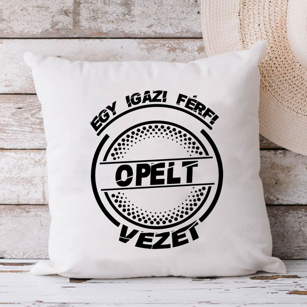 Opeles párna, autós párnák. Egy igazi férfi Opelt vezet feliratos párna. Egyedi ajándék Opel tulajdonosoknak vagy olyan barátodnak aki ilyen autóról álmodozik bármilyen alkalomra tökéletes ajándék.
