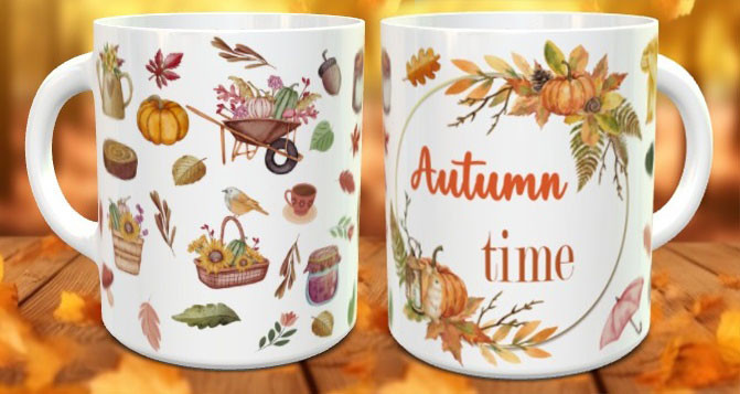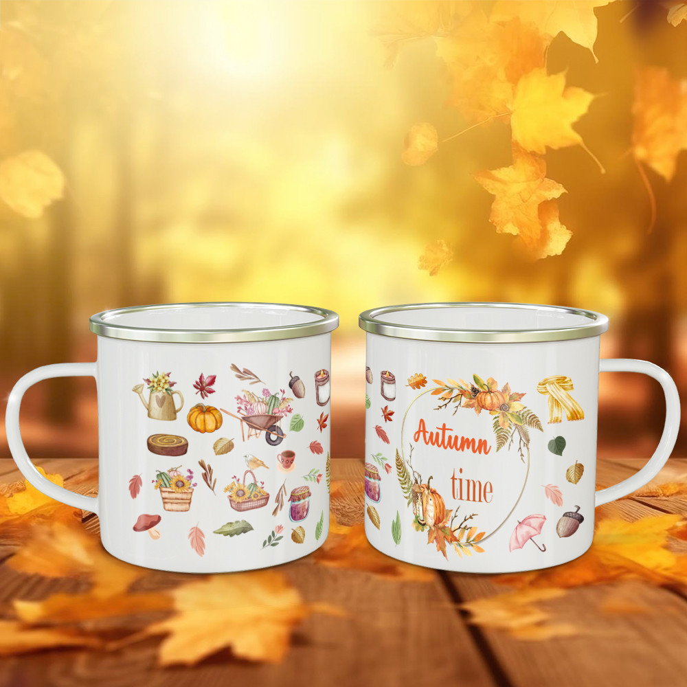 Őszi mintás bögre, Autumn time. Őszi hangulatú bögre a kedvenc évszakodra, amikor elkezdődik a forró italok időszaka, nincs is másra szükséged, mint egy olyan bögre ami az ősz hangulatát idézi. Rendelj barátnődnek, családtagodnak is egy szuper őszi bögrét, ami lehet kerámia akár narancs színű belsővel is vagy igazi retro zománc anyagú is.
