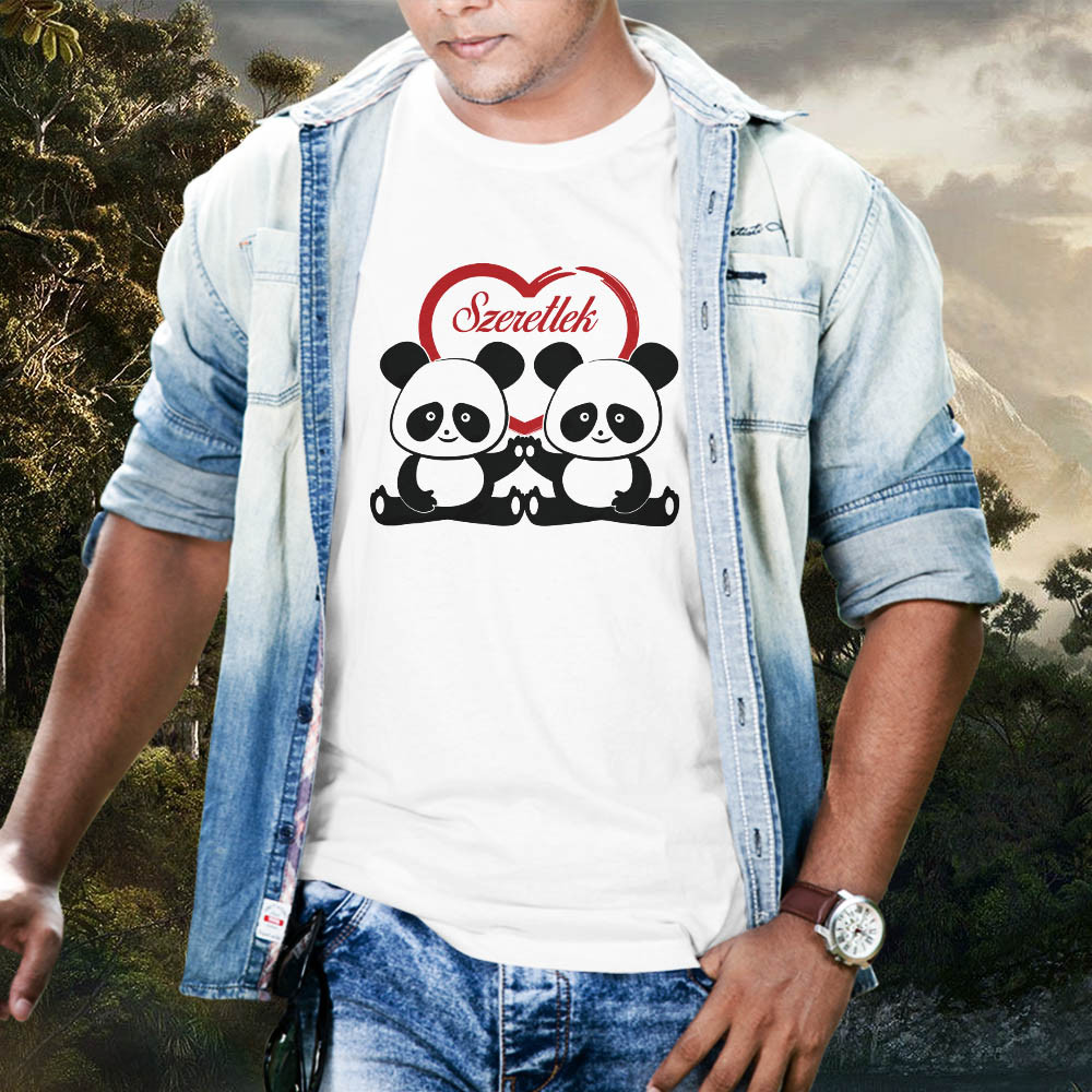 Valentin napi ajándék, pandás szeretlek póló. Szeretlek feliratos póló cuki pandákkal, akiknek egyetlen férfi sem tud ellen állni. Ajándékozd meg évfordulótokon, Valentin napon párodat vagy bármilyen alkalomra amikor el szeretnéd mondani mennyire szereted Őt.