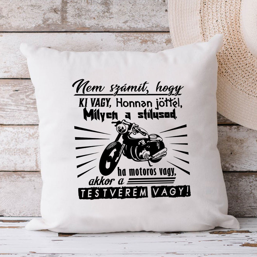 Párna motorosoknak, testvérem vagy. Párna csakis a sebesség megszállottjának vagyis egy igazi motorosnak. "Nem számít, hogy ki vagy, honnan jöttél, milyen a stílusod,  ha motoros vagy, akkor a testvérem vagy!" felirattal. Ajándékozd meg egy párnával motoros barátod, családtagod.