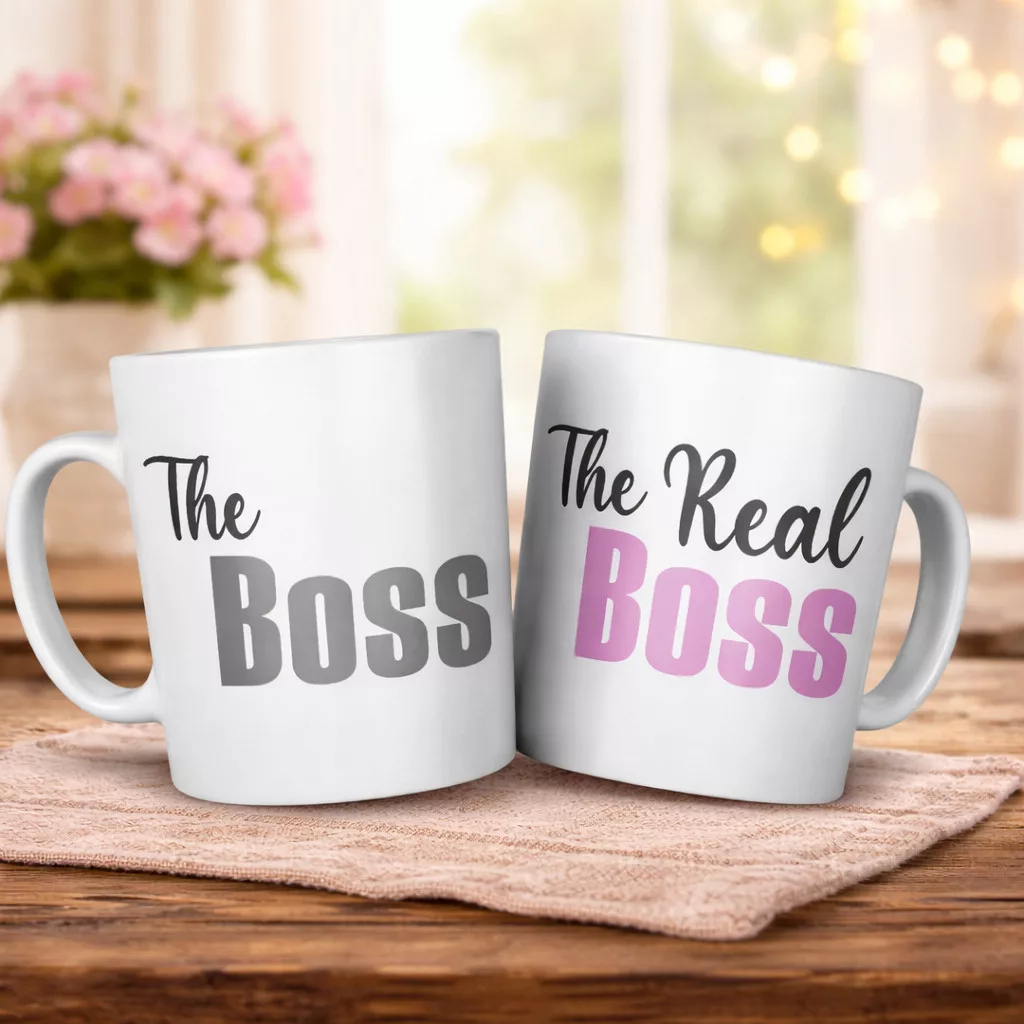 Humoros páros bögre, The real boss. Vicces bögre Valentin napra, születésnapra, karácsonyra neked és szerelmednek. Nálatok ki az igazi főnök otthon? Boss és Real boss humoros feliratú bögrék többféle színben is típusban is rendelhetőek. Rendelhető akár díszdobozban is.
