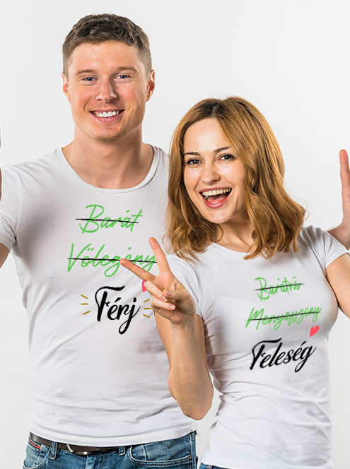 Páros pólók, póló házasoknak. Ajándék évfordulóra vagy akár nászajándéknak is tökéletes friss házasoknak. Barát, vőlegény, férj póló férfiaknak, illetve barátnő, menyasszony, feleség feliratos póló nőknek tökéletes párosítás minden jeles alkalomra. Rendelj pólót Valentin napra mindkettőtöknek.