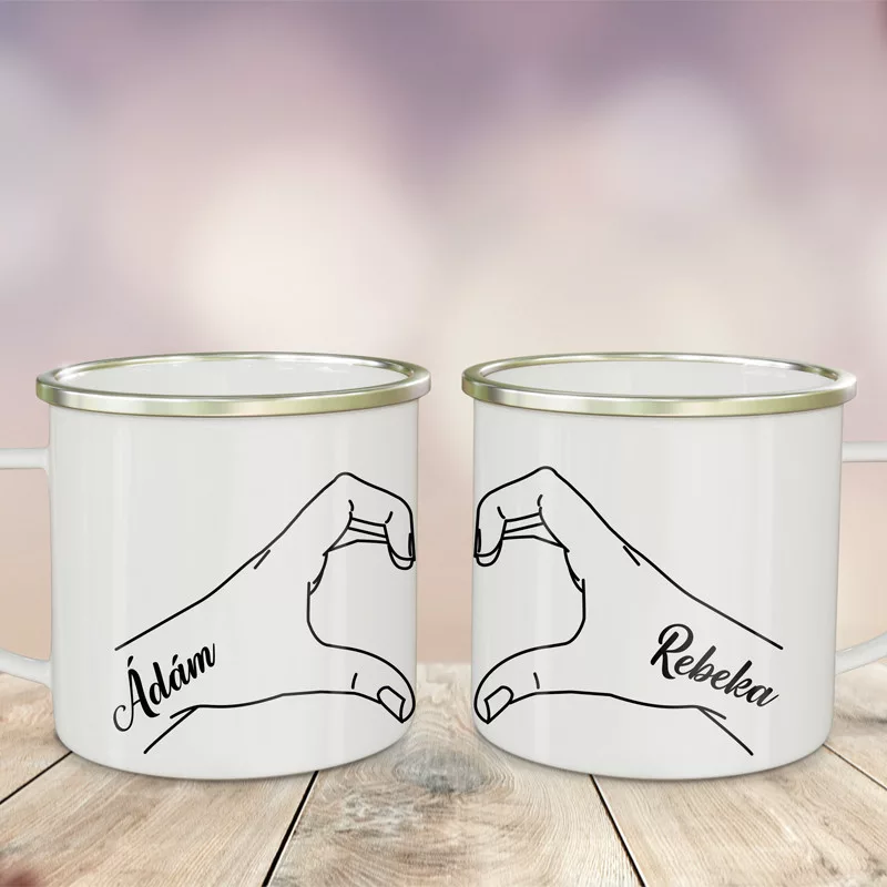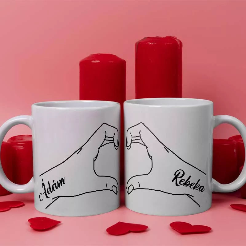 Páros bögre, szerelmes kezek. Bögre Valentin napra, házassági évfordulóra szerelmednek. Bögre kéz mintával, melyek egymás mellé helyezve, együtt szívet alkotnak, kimondottan pároknak akik csak együtt egy egészek. Ajándékozd meg szerelmed és magadat egy egyedi névre szóló bögrével, ami mindig veletek lehet, amikor nem vagytok együtt.