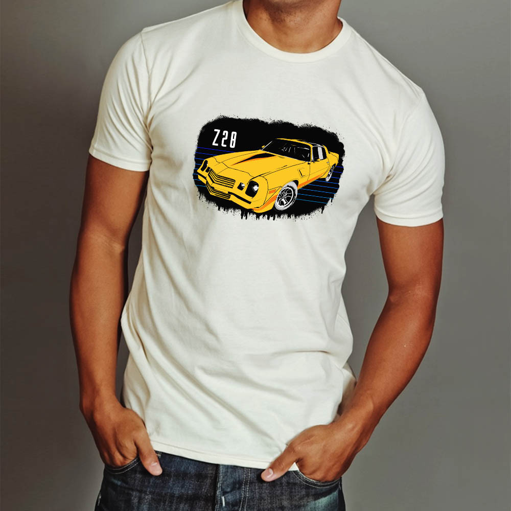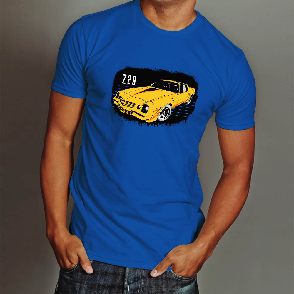 Chevrolet pólók, Chevrolet Camaro Z28. Egy igazi retro autó rajongónak kötelező viselet egy ilyen póló. Rendeld meg magadnak vagy egy olyan ismerősödnek, akinek születésnapja vagy névnapja van.