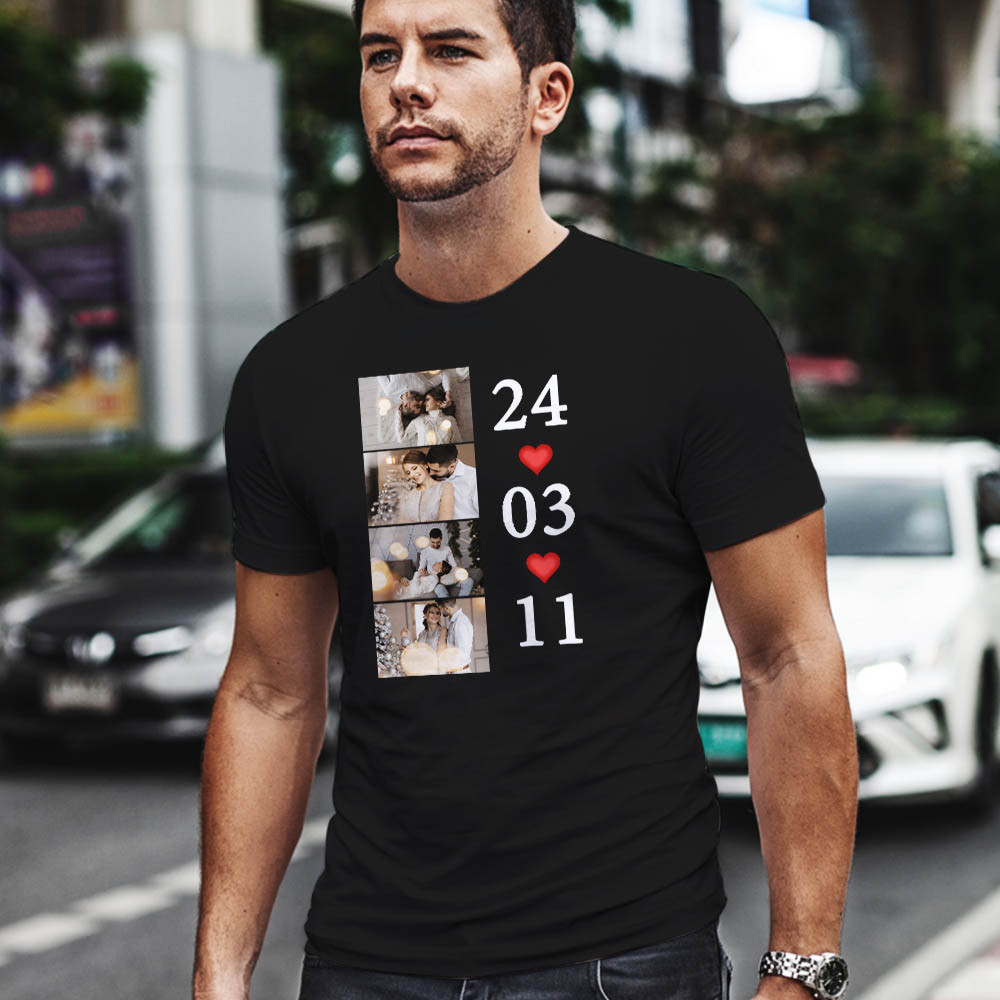 Évfordulós ajándék, férfi póló 4 fotóval. Szerelmes ajándék barátod születésnapjára, névnapjára, de akár évfordulótokra is tökéletes választás. 4 darab saját fotóval, dátummal egy különleges és egyedi meglepetést szerezhetsz szerelmednek. Többféle színű és méretű, pamut póló közül választhatod ki a számodra megfelelőt.