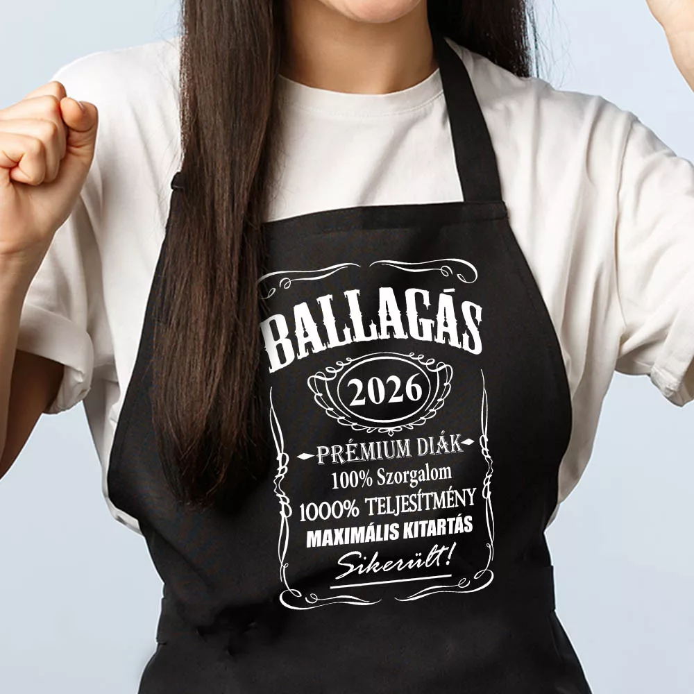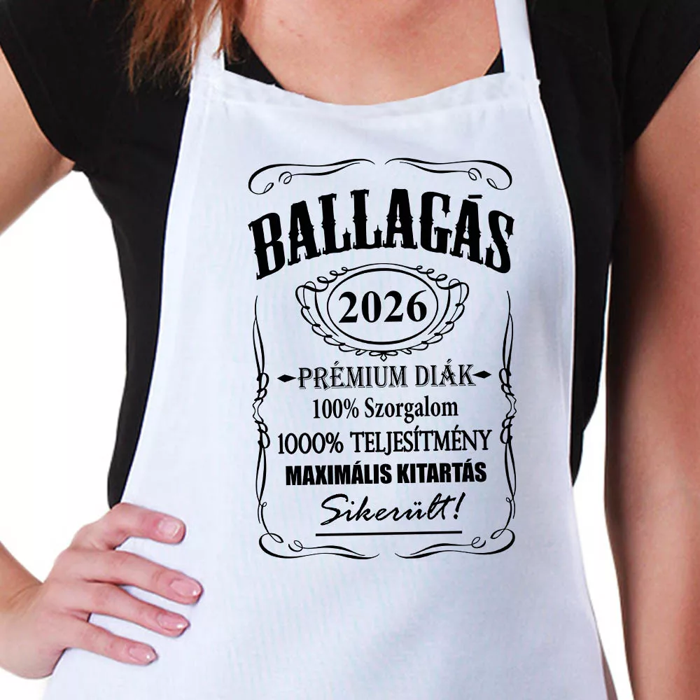 Ez a „Prémium Diák” feliratú kötény a klasszikus vintage italcímkék stílusában készült, hirdetve a viselője 100%-os szorgalmát és maximális kitartását. Legyen szó egyetemi diplomaosztóról vagy középiskolai ballagásról, ez a kötény egyszerre praktikus használati tárgy és maradandó emlék. Az évszám egyedileg módosítható, így minden ballagási szezonban tökéletes és aktuális meglepetés.