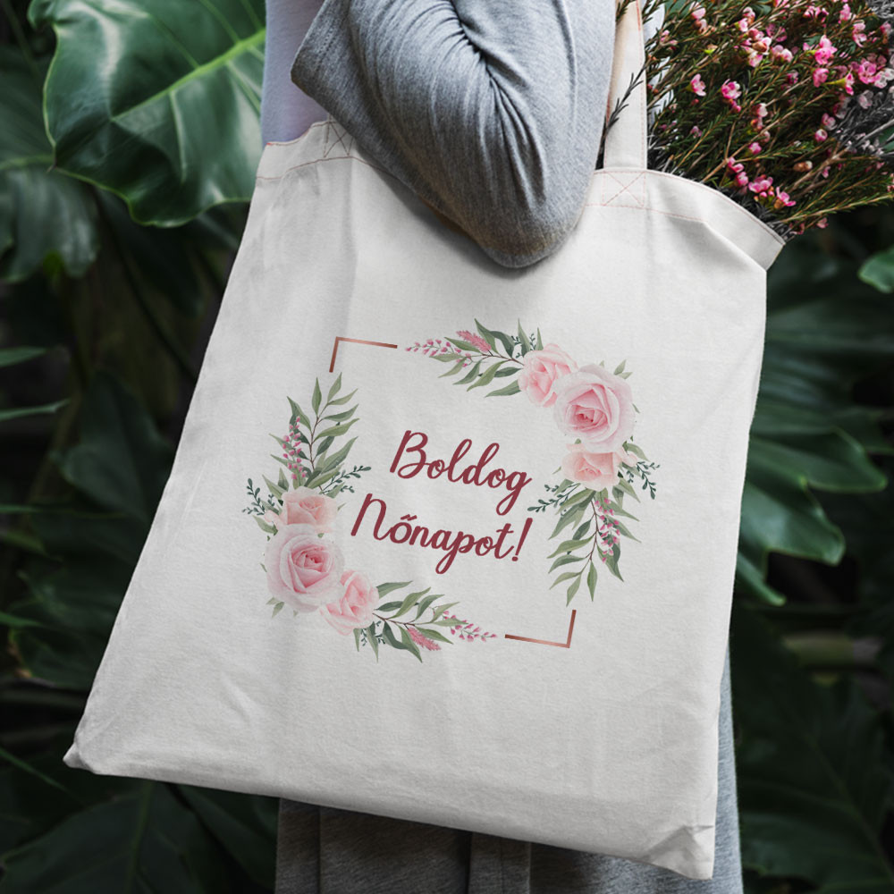 Rózsa mintás vászontáska nőnapra
