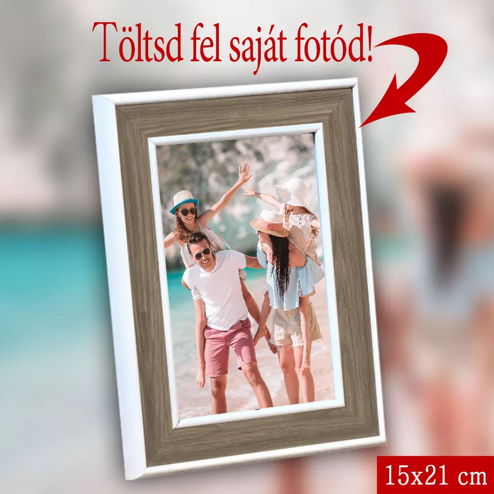 Fa hatású képkeret, 15x21cm fotóelőhívás. Barna vagy krém színárnyalatú fa hatású műanyag képkeretek kitámasztós hátfallal, melyben mi minden esetben a küldött kép alapján fogjuk álló vagy fekvő helyzetbe elhelyezni a képet. 1 darab 15x21cm-es fotóval kérheted.