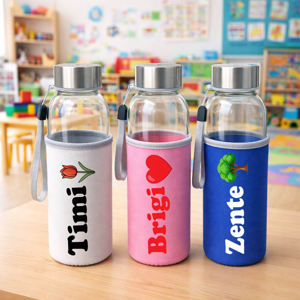 Indul az ovi, és szeretnéd, hogy gyermekednek mindenből a legjobb jusson? Ez az egyedi üvegkulacs a legcukibb és legpraktikusabb kiegészítő az ovis mindennapokhoz. A puha neoprén tokra nemcsak a gyermeked nevét, hanem a saját óvodai jelét is rátesszük, így biztosan tudni fogja, melyik az ő finom itala!