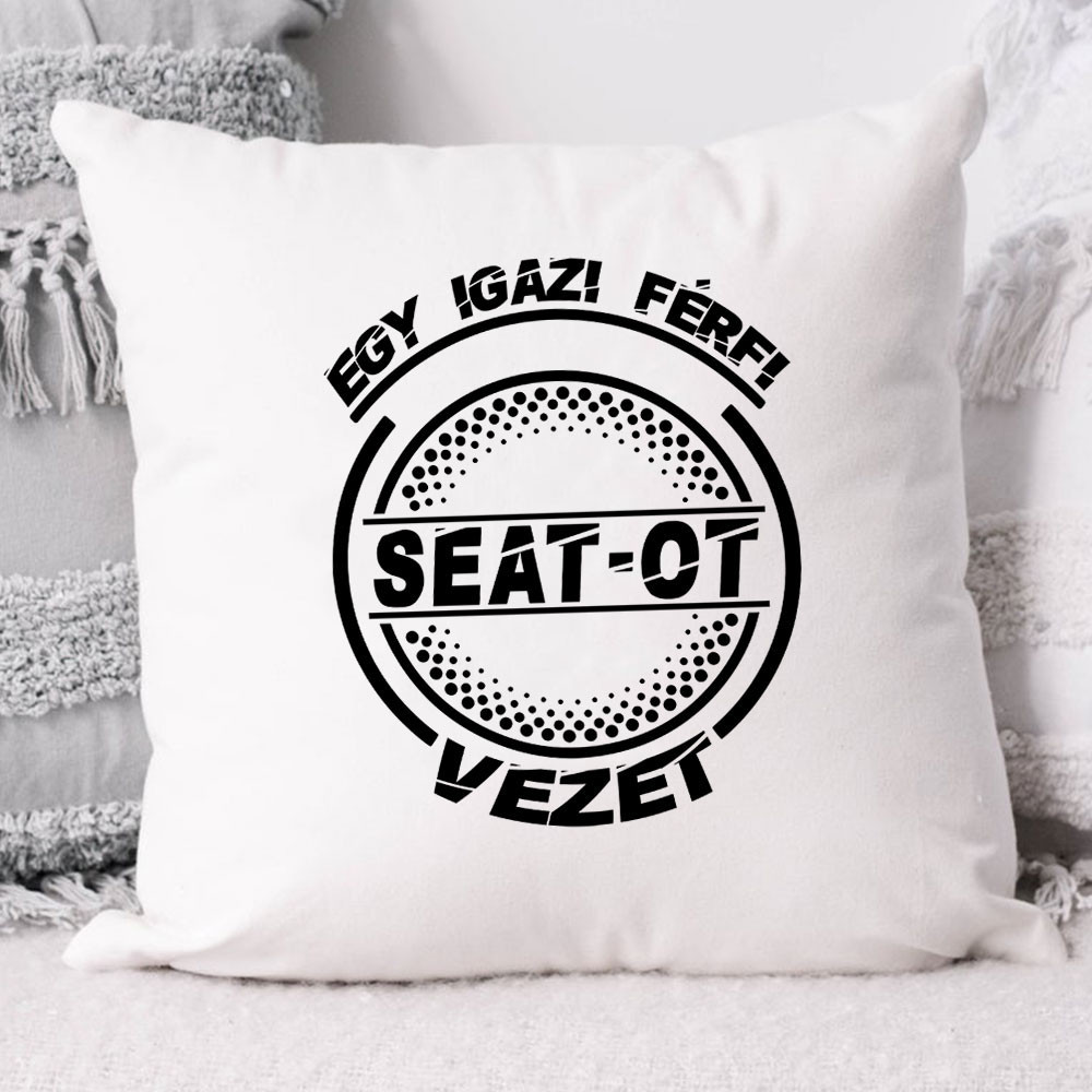 Seatos párna, autós ajándék. Egy igazi férfi Seat-ot vezet feliratos párna. Születésnapra, névnapra legjobb ajándék Seat tulajdonosoknak vagy barátodnak, ismerősödnek.