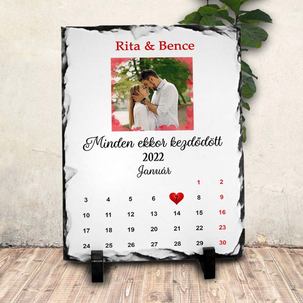 Évfordulós ajándék, minden ekkor kezdődött kőlap. Kőlap saját fotóval és naptárral, ami szerelmetek kezdetét jelzi. Tökéletes meglepetés akár házzassági évfordulóra, de valentin napra is.