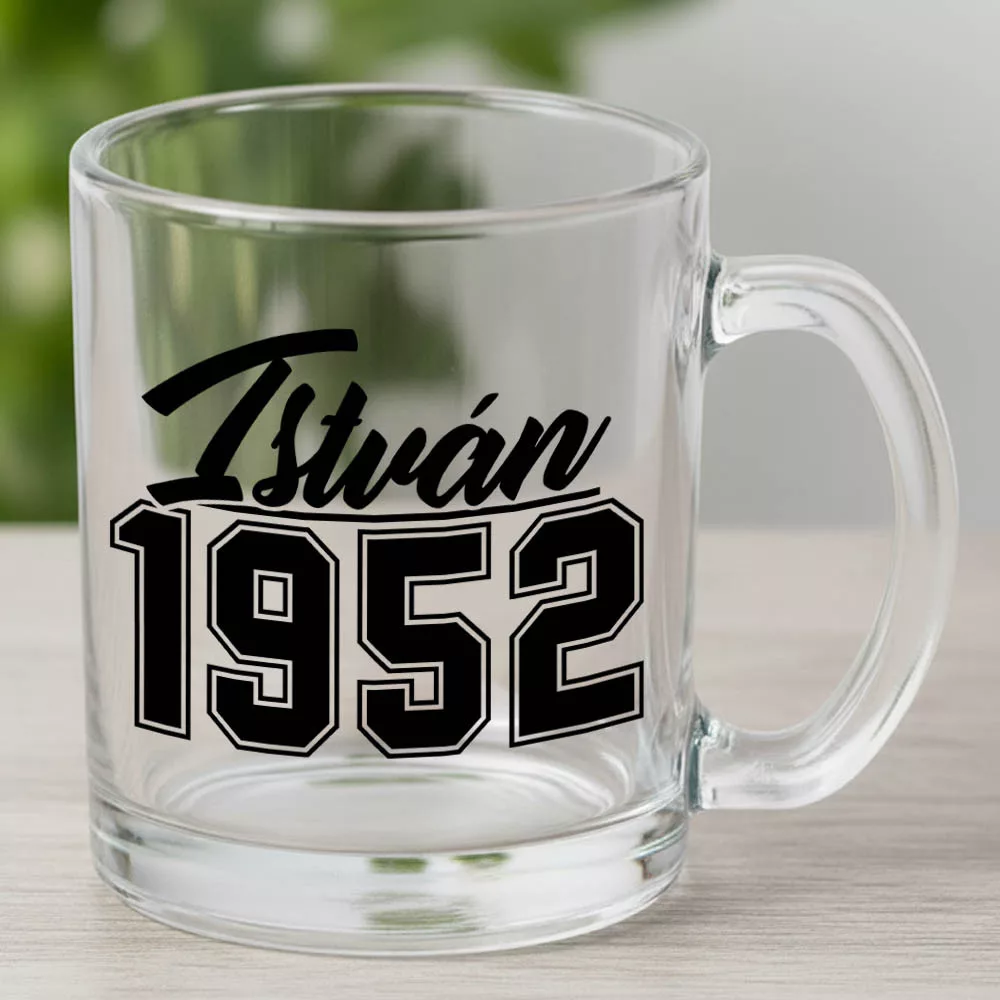 Születésnapi ajándék, saját neves bögre. Névre szóló bögre, egyedi feliratos bögre névnapra, születésnapra. Barátoknak, kollégáknak, családtagoknak tökéletes ajándék születésnapra, névnapra, de más alkalmakra is bátran megrendelheted. A mintán megjelenő nevet és évszámot Te választhatod ki. Üveg, zománc vagy kerámia bögrék, a minta tartós, nem kopik le. Mosogatógépben is tisztítható.