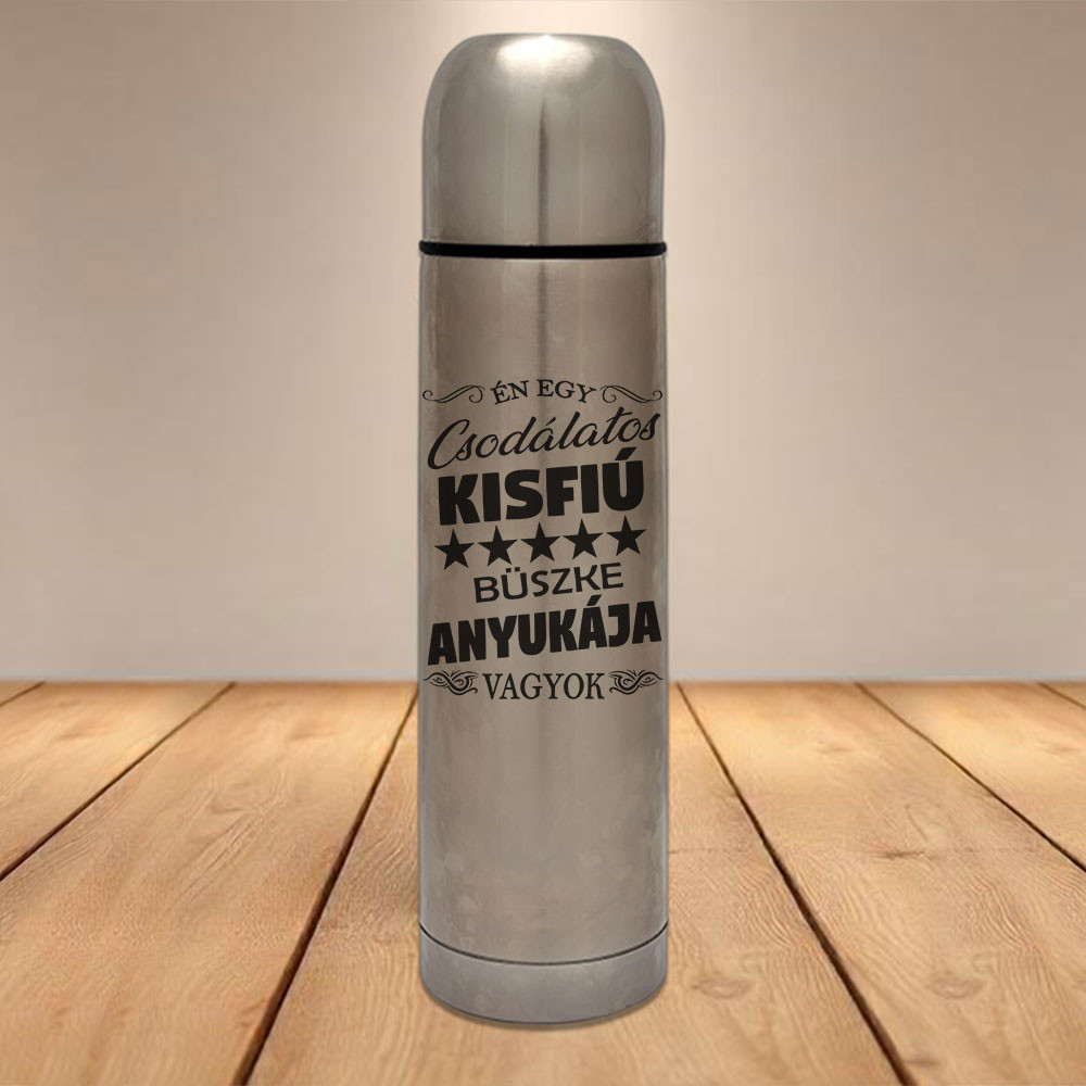 Termosz anyukáknak, csodálatos kisfiú. Édesanyának aki egy csodálatos kisfiú büszke anyukája, ha több kisfiúnak is szerencsés anyukája írd meg nekünk megrendelés előtt hány kisfiúról van szó és mi úgy készítjük el neked a terméket. Rendelj a legjobb anyukának születésnapjára vagy anyák napjára egy tökéletes egyedi termoszt.