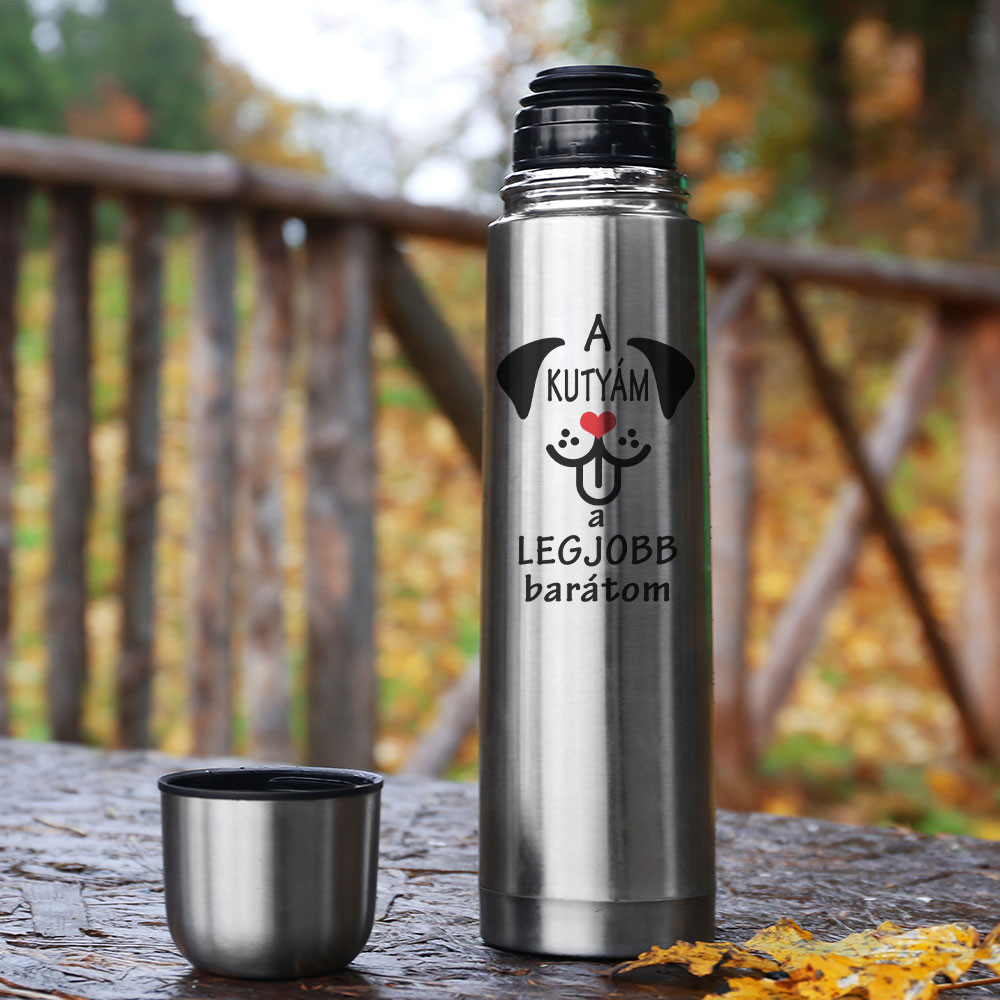 Kutyás ajándék, a legjobb barátom termosz. A kutyám a legjobb barátom feliratos termosz, igazi meglepetés egy olyan embernek, akinek a kutyája is családtagnak számít. Legjobb szülinapi ajándék minden állatbarát férfinak és nőnek.