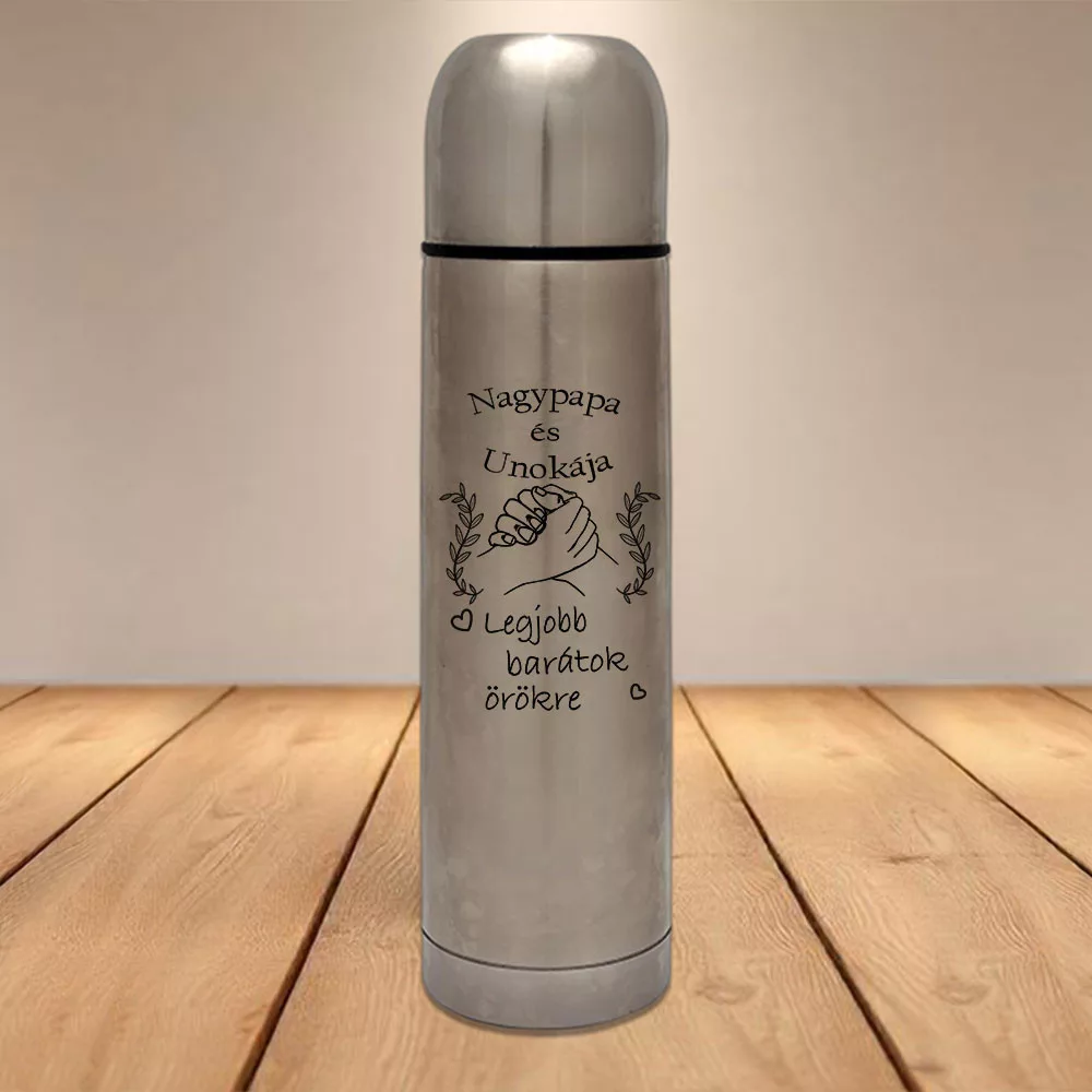Termosz nagyszülőnek, nagypapa és unokája legjobb barátok örökre, termosz a legjobb nagypapának és unokáknak. Tökéletes páros termosz karácsonyi, apák napi vagy szülinapi ajándékként, amivel elmondhatod mennyit is jelent számodra nagypapád, milyen különleges kapcsolat van unoka és nagypapa között.