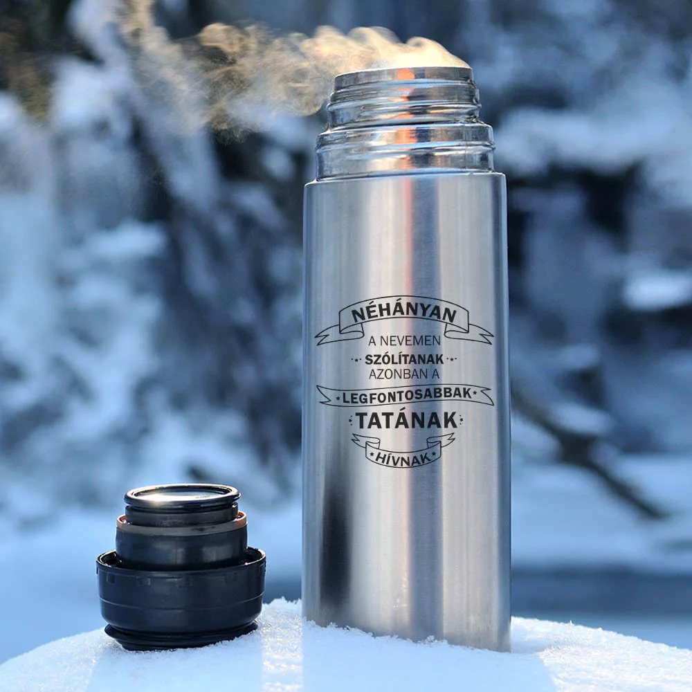 Termosz nagyszülőnek, legfontosabbak tatának hívnak. Néhányan a nevemen szólítanak, azonban legfontosabbak tatának hívnak feliratos termosz nagyapáknak. Lepd meg őt születésnapján, névnapján egy főzésnél is praktikus termosszal.