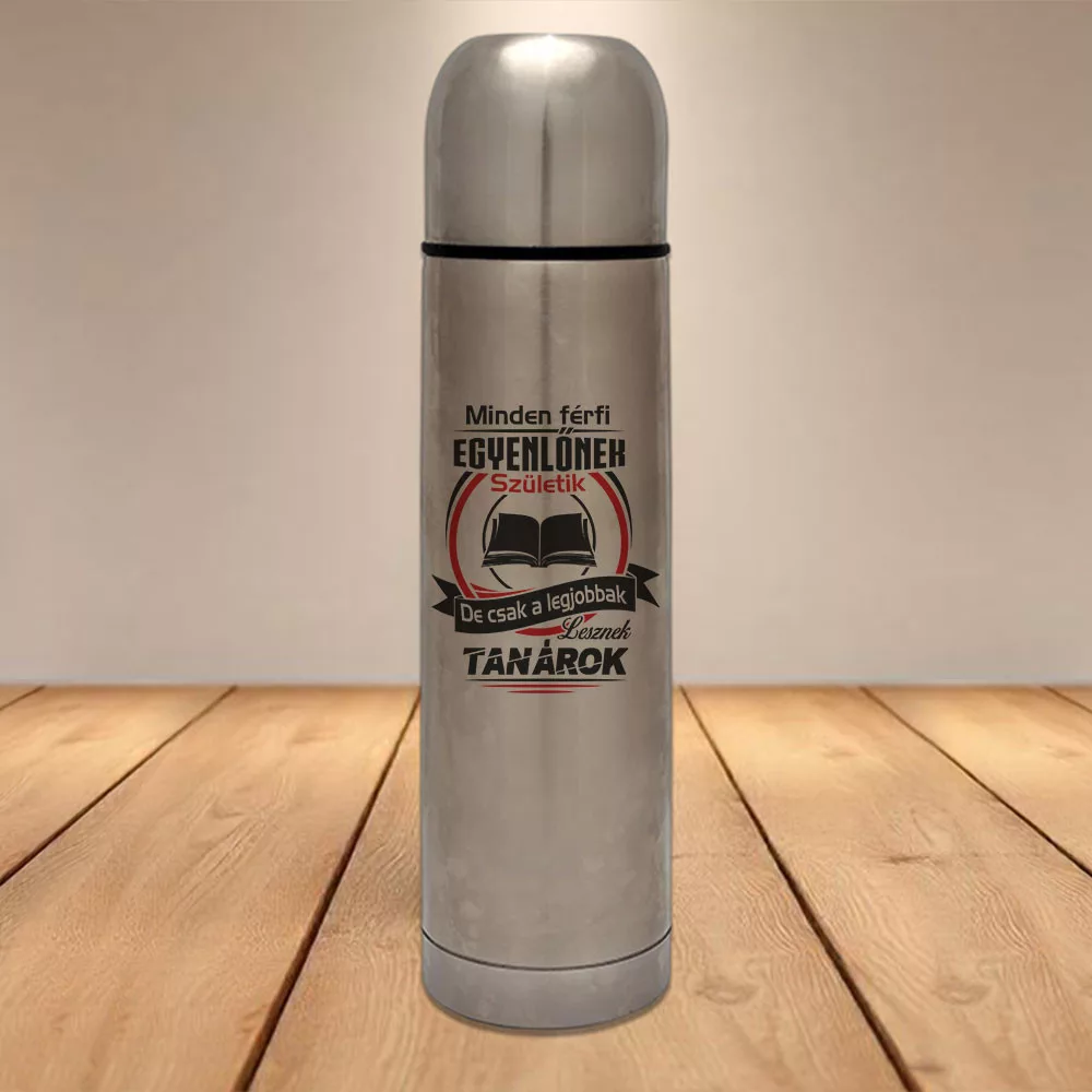 Ajándék tanárnak, legjobbak lesznek termosz. Minden férfi egyenlőnek születik, de csak a legjobbak lesznek tanárok feliratos termosz. Tökéletes ajándék ballagásra tanároknak, osztályfőnököknek, de születésnapra, névnapra is megfelelő rokonodnak, barátodnak.