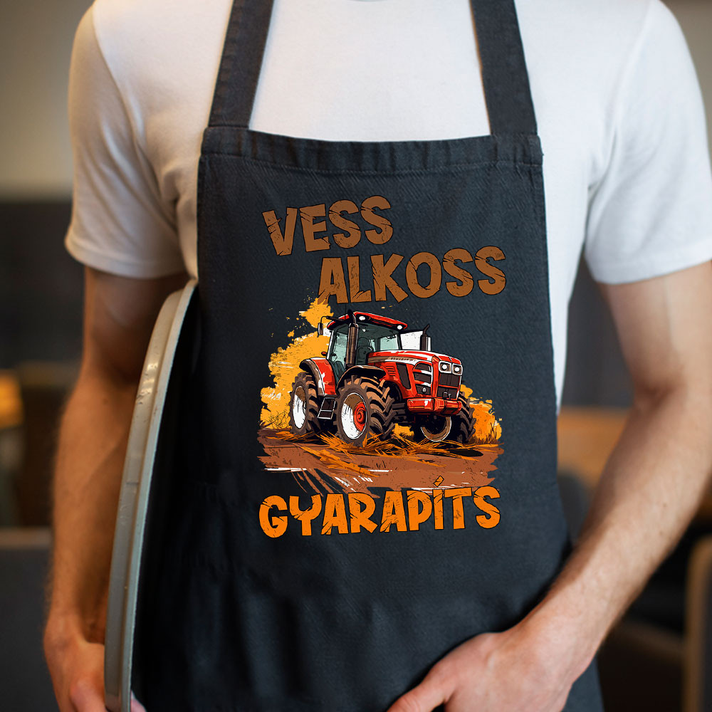 Kötény traktorosnak, vess, alkoss, gyarapíts feliratos kötény, mindenkinek aki a mezőgazdaságban dolgozik kötelező viselet. Ha ismersz olyat akinek még nincs ilyen köténye ajándékozd meg vele névnapján, vagy születésnapján. Kiváló meglepetés a traktorok szerelmesének.