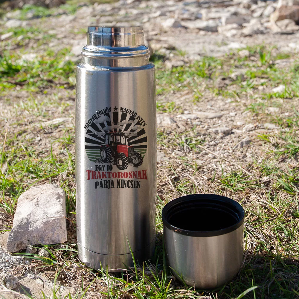 MTZ meglepetés, egy jó traktoros termosz. Magyar földön, magyar Isten, egy jó traktorosnak párja nincsen, tökéletes szülinapi ajándék minden MTZ-s férfinak és nőnek. Melegen vagy hidegen is tudja tartani az italokat, űrtartalma: 500ml-es vagy 750ml-es.