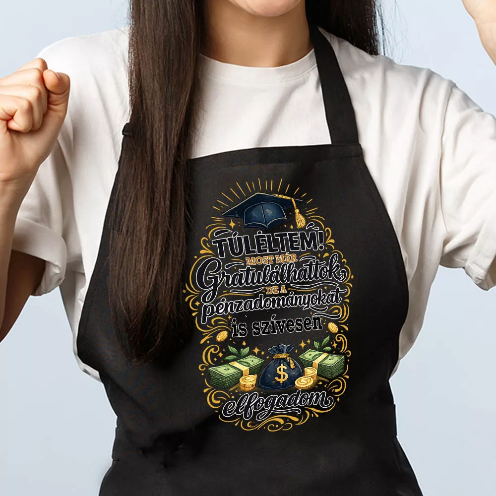 Ez a „Túléltem!” feliratú kötény a legviccesebb ajándék minden frissen végzettnek, aki a könyvek után szívesen ragad fakanalat. A grafika humorosan emlékeztet arra, hogy a diploma megszerzése után a „pénzadományokat” továbbra is szívesen fogadja az ifjú séf. Legyen szó egyetemi diplomaosztóról vagy középiskolai ballagásról, ez a kötény garantáltan a családi sütögetések és kerti partik fénypontja lesz.