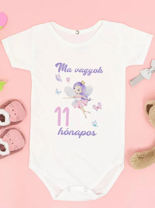 Az első szülinap előtti utolsó hónap is különleges! A "Ma vagyok 11 hónapos" body egy bájos kis tündérrel és pasztell árnyalatokkal készült. A 100% pamut anyag és a fehér alapszín garantálja a kényelmet és az ünnepi hangulatot.