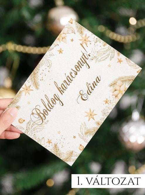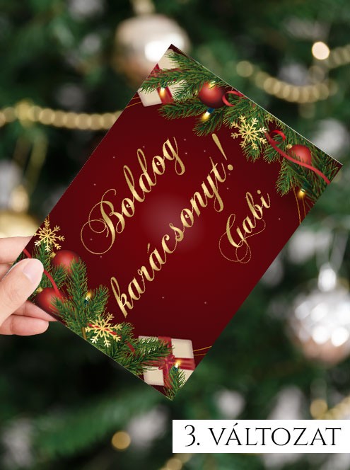 Karácsonyi üdvözlő kártya, boldog karácsonyt. 4 féle színű és stílusú üdvözlőkártya közül választhatsz, amelyek közül nőknek és férfiaknak egyaránt megtalálhatod a megfelelőt. Válaszd ki a neked tetsző változatot és írd be a nevét, ki kapja az ajándékot.