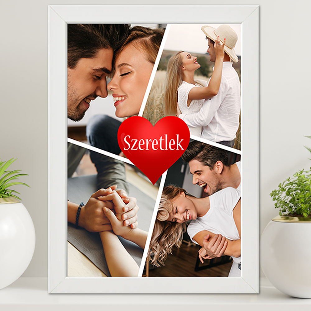 Ajándék szerelmeseknek, kollázs fényképes nagy falikép. Szerelmes ajándék barátod, barátnőd születésnapjára, névnapjára, de akár házassági évfordulóra is tökéletes meglepetés. 4 darab saját fotóval készült termék bármilyen alkalomra kiváló ajándék.