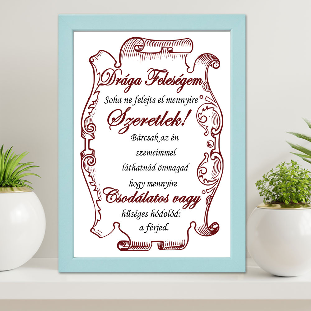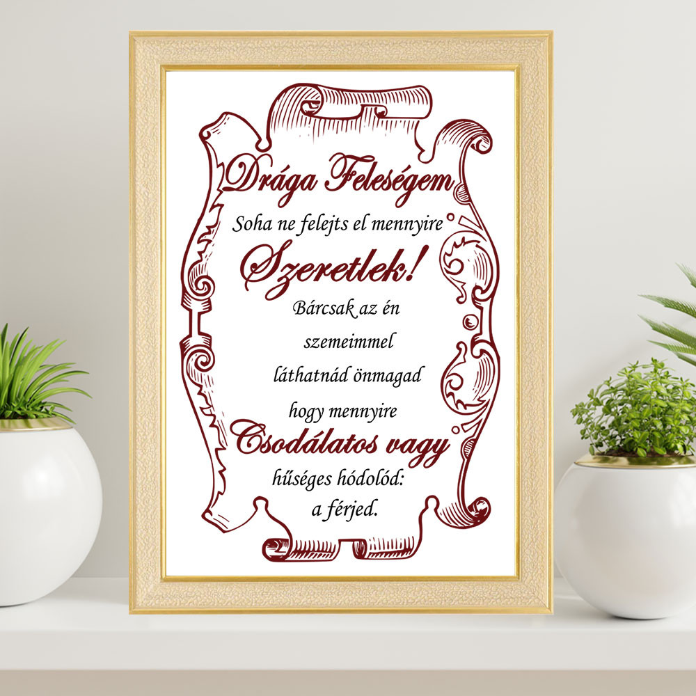 Évfordulós falikép nőknek, drága feleségem. Ha neked van a legcsodálatosabb feleséged, lepd meg őt házassági évfordulótokon, születésnapjára vagy karácsonykor és mondd el neki egy faliképpel mennyit is jelent ő neked.