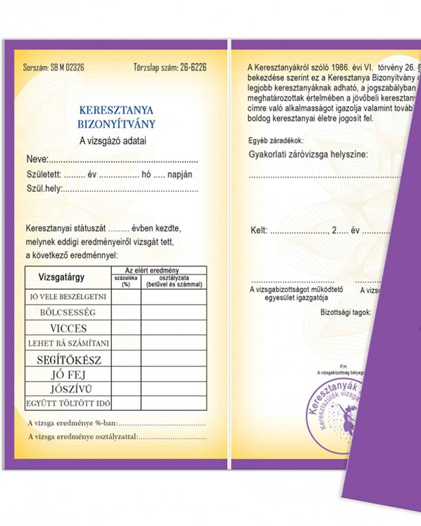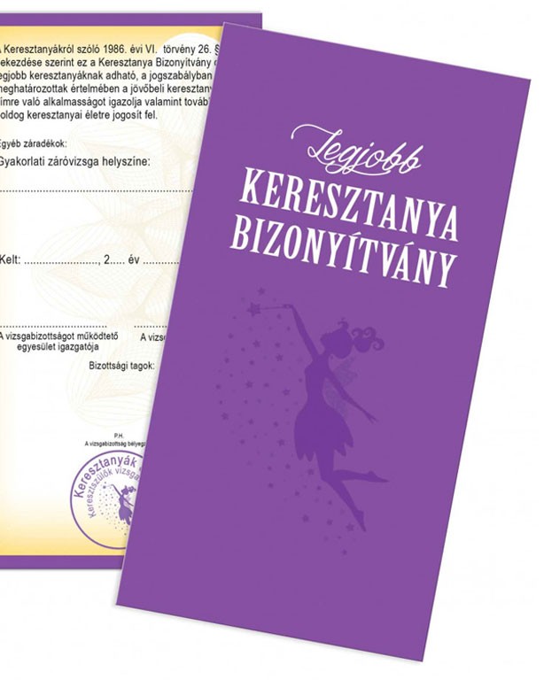 Vicces bizonyítvány, ajándék keresztanyáknak. Írd be az érdemjegyeket a legjobb keresztanyának, az ötletes, szórakoztató vizsgatárgyak mellé.