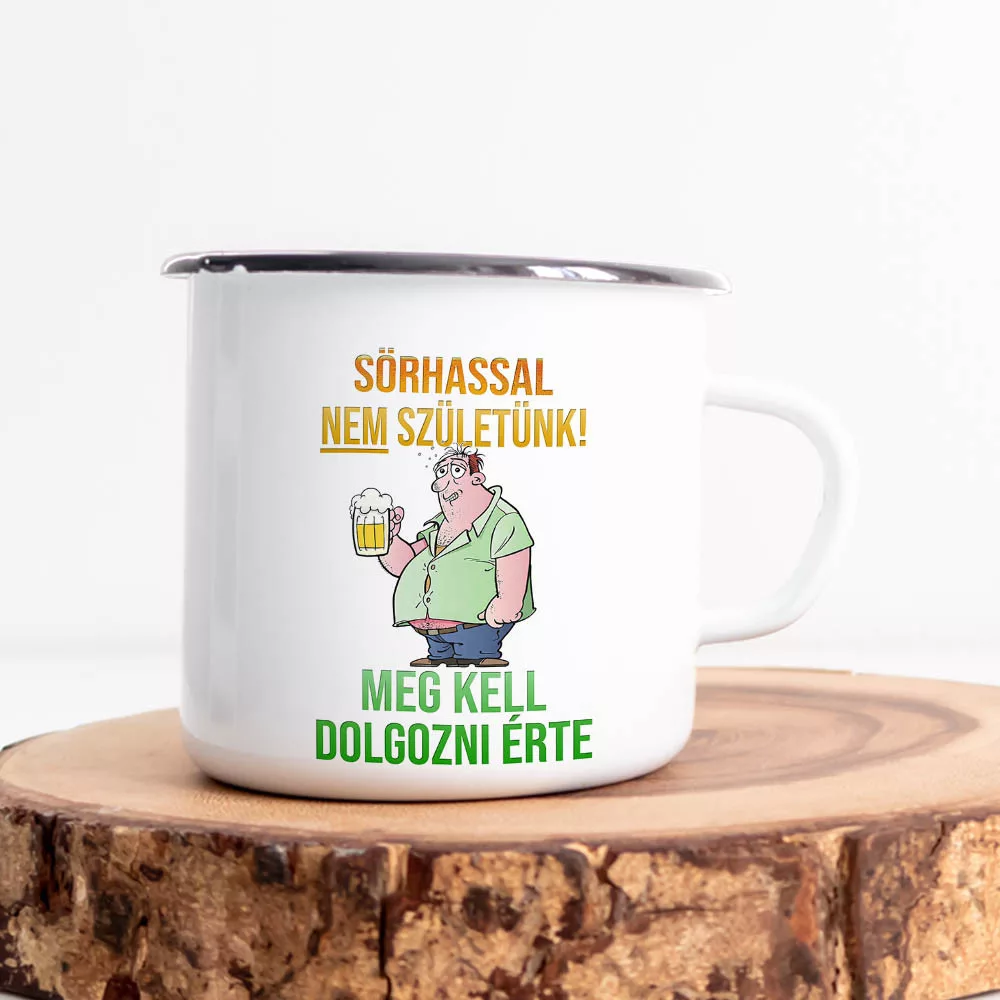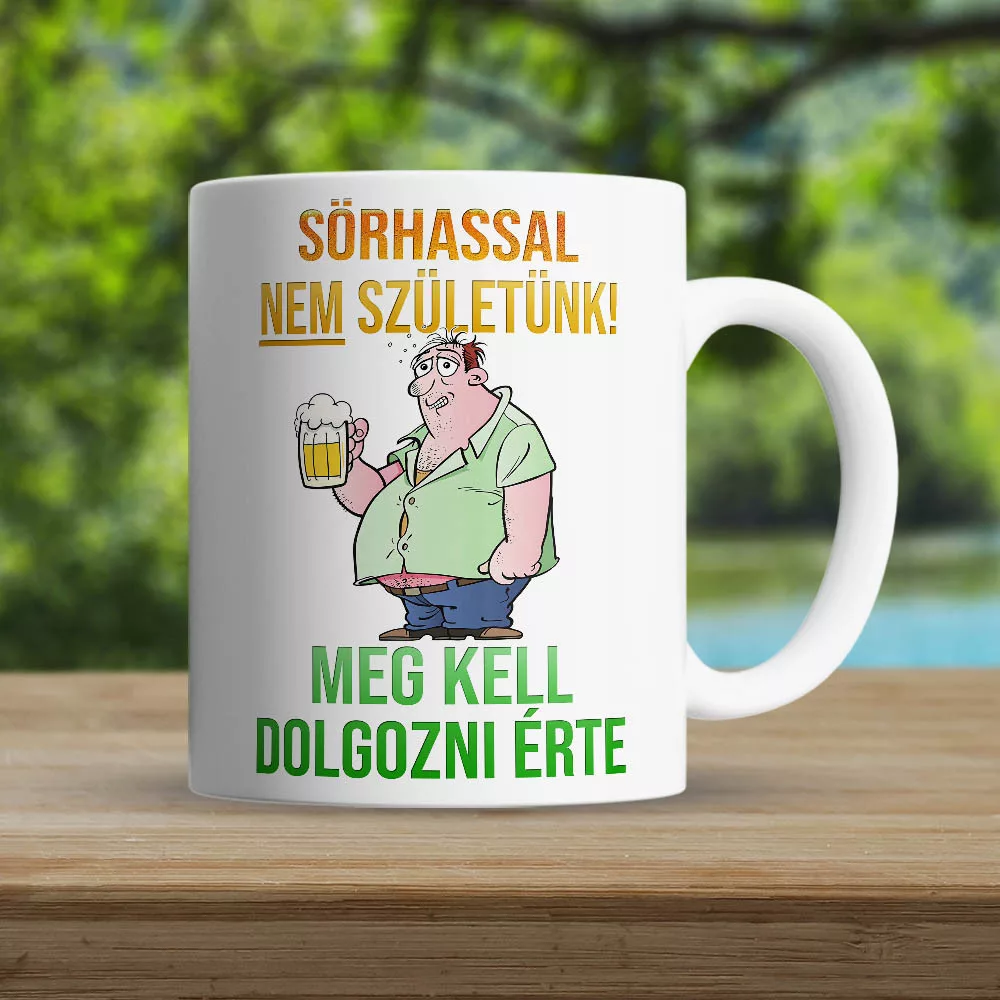 Sörös vicces bögre, sörhasért dolgozni kell. Alkohol témájú feliratos vicces bögre sör kedvelőknek. Sörhassal nem születünk, meg kell dolgozni érte vicces felirattal tréfás ajándék szülinapra, névnapra vagy bármilyen olyan alkalomra amikor egy vicces ajándékot szeretnél átadni. Nevettesd meg az ünnepeltet egy ilyen humoros bögrével amit díszdobozban is kérhetsz!