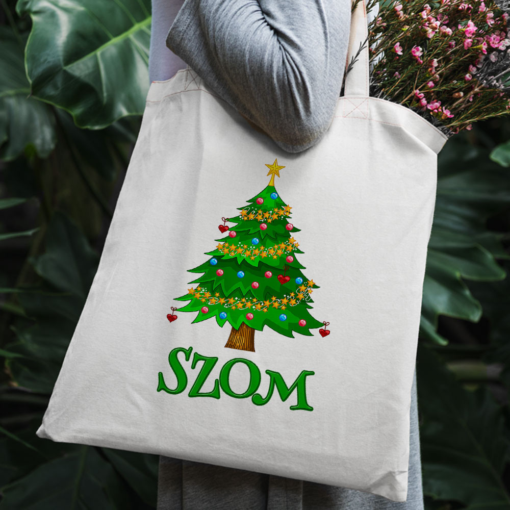 Humoros karácsonyi ajándék, Fa szom táska. Egy vászontáska, ami tökéletes ajándék, olyan családtagoknak, barátoknak akik a sok készülődés miatt nem annyira szeretik a karácsonyt vagy csak kedvelik a humoros táskákat. Ajándéknak is kitűnő választás, de ha Te szeretnél egyedi táskát magadnak karácsonyra rendeld meg bátran, hiszen megrendelés után mi pár napon belül küldjük is neked azt.
