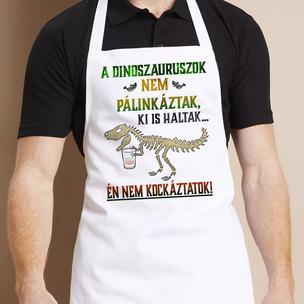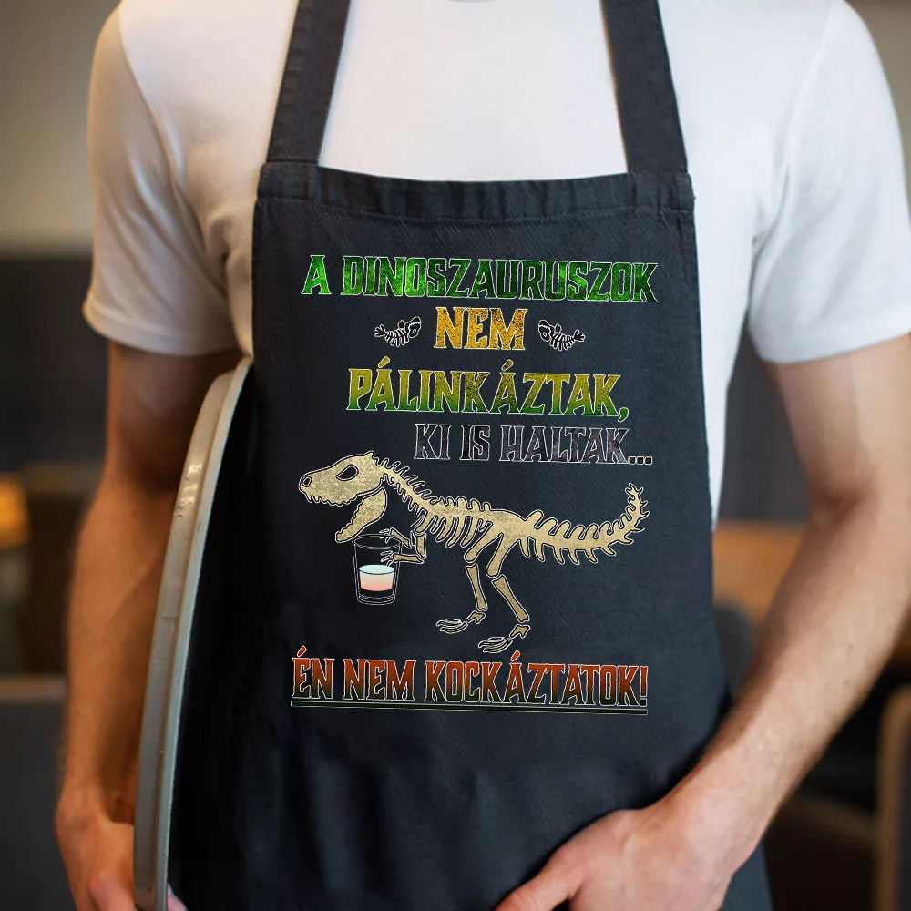 Vicces dinós ajándék, pálinkás kötény. A dinoszauruszok nem pálinkáztak, ki is haltak feliratos kötény, humoros ajándék pálinka kedvelő barátodnak, családtagodnak születésnapra, névnapra.