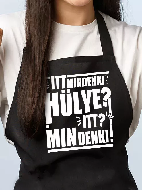 Humoros kötény, mindenki hülye. Itt mindenki hülye? Itt? Mindenki, vicces feliratos kötény, ha mosolyt szeretnél csalni barátaid arcára egy ajándékkal vagy meglepnéd magadat egy egyedi köténnyel, ami kifejezi mindennapjaid. Kötény színe fekete.