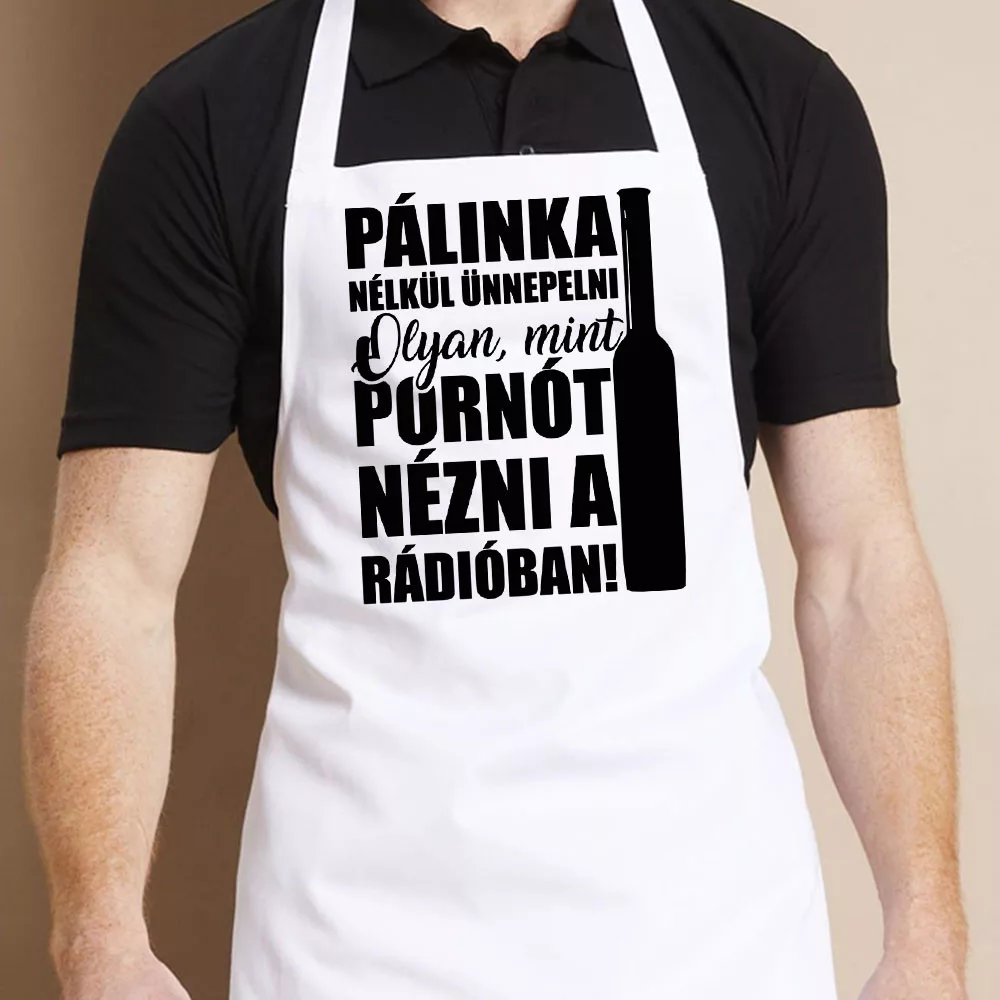 Vicces pálinkás kötény, ünnep pálinka nélkül, olyan mint pornót nézni a rádióban feliratos kötény nőknek és férfiaknak, akik szeretik az igazi magyar pálinkát. Ajándékozd meg családtagod, barátod az ünnepek alkalmával egy vászon köténnyel.